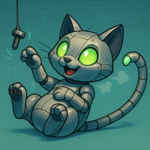 He clanks through the blockchain at 3AM, chasing green candles and fighting paper paws. One paw on the keyboard, one paw on your bag. When others panic sell, Clank Cat meows harder. No roadmap.